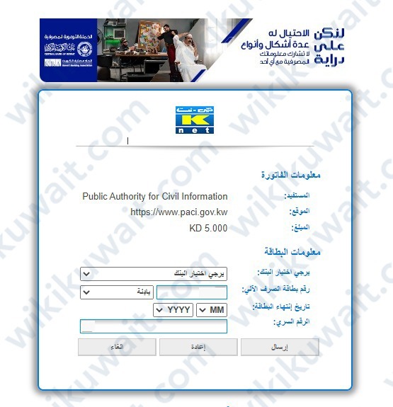 - إدخال بيانات كي نت ثم إتمام عملية تسديد الرسوم.