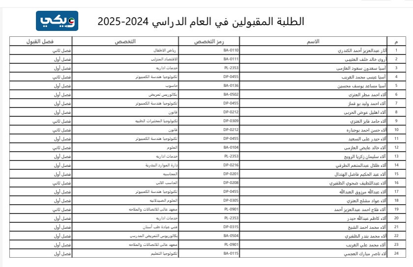 يمكننا اتباع الخطوات الآتية لتحميل كشف أسماء المقبولين في التطبيقي عام 2024م بامتداد PDF: