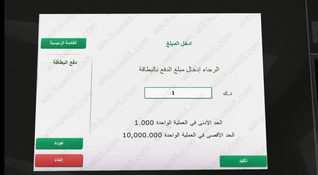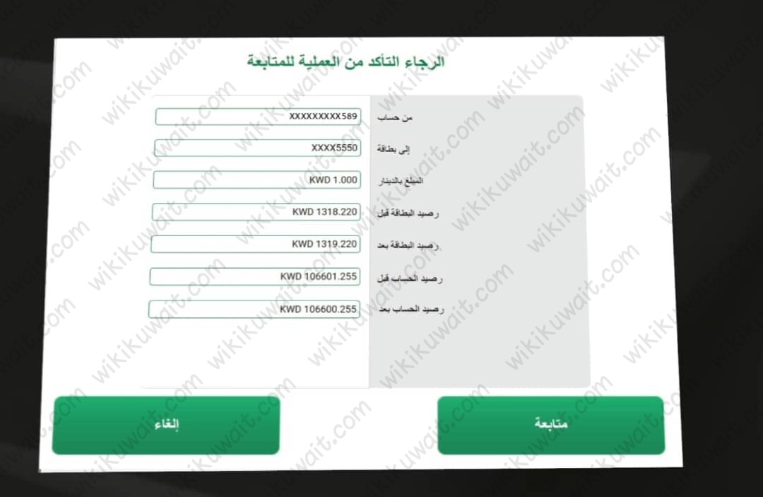 طريقة التحويل الى بطاقة الائتمان عبر اجهزة السحب الآلي بيت التمويل الكويتي