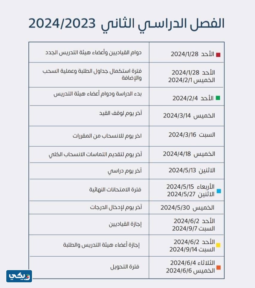التقويم الدراسي جامعة الكويت 2023 / 2024 الفصل الثاني