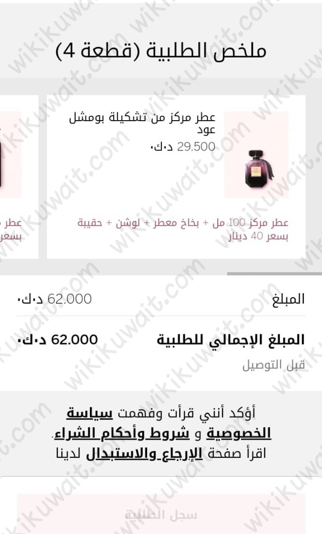 الطلب من موقع فيكتوريا سيكريت الكويت