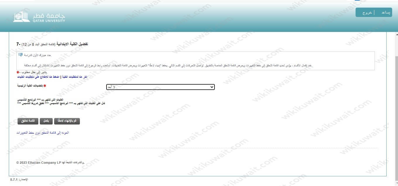 - إدخال بيانات تفضيلات الكلية الرئيسية (الابتدائية) من القائمة المنسدلة.