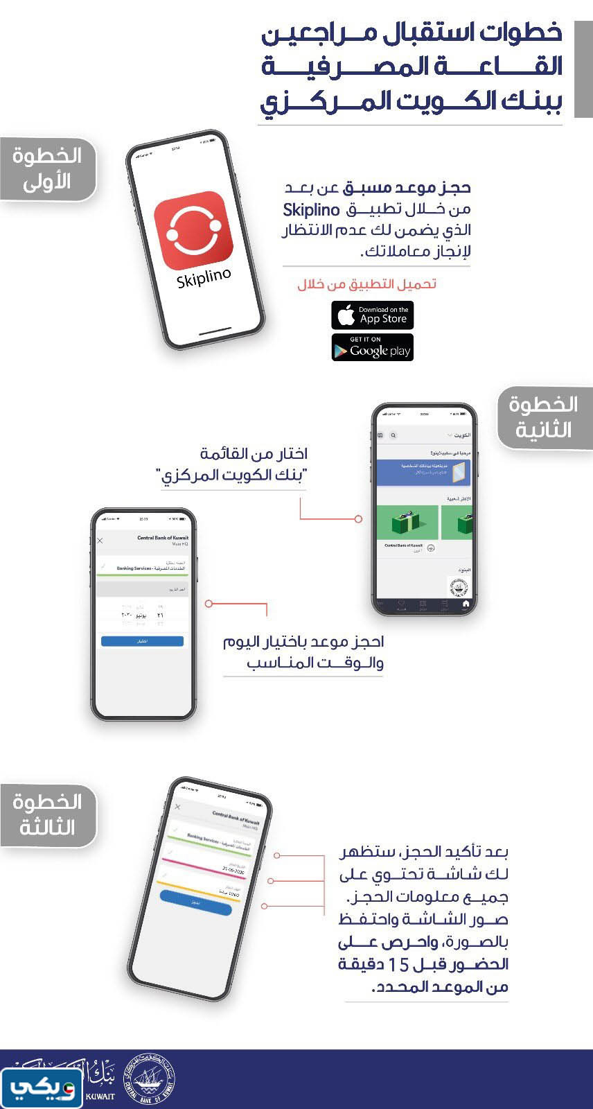 - حجز موعد البنك المركزي الكويتي عبر تطبيق سكبلينو Skiplino.