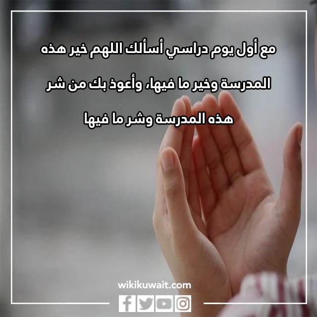 - مع أول يوم دراسي أسألك اللهم خير هذه المدرسة وخير ما فيها، وأعوذ بك من شر هذه المدرسة وشر ما فيها.