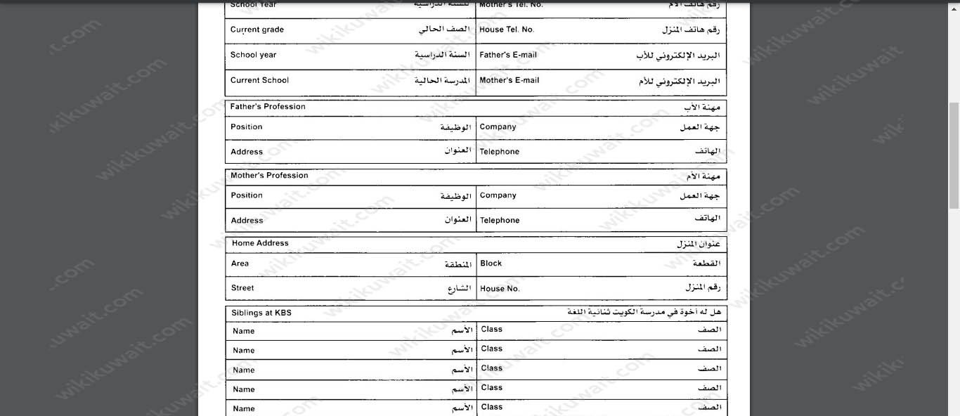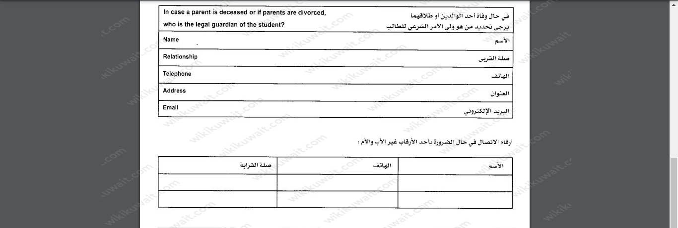 - تعرض استمارة تقديم طلب قبول في مدرسة ثنائية اللغة في الكويت من أجل تعبئة البيانات اللازمة كما يلي: