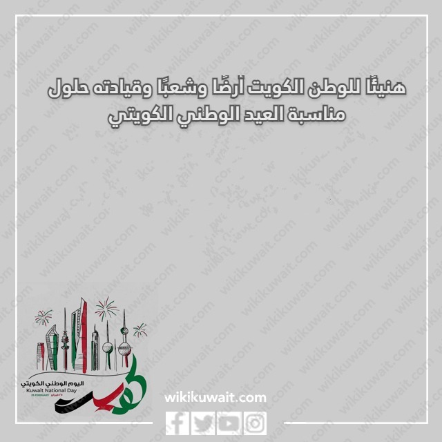 يمكن التهنئة بمناسبة العيد الوطني بقول: كل عام والوطن الكويتي وطن العز والكبرياء والصمود، يوم وطني سعيد.