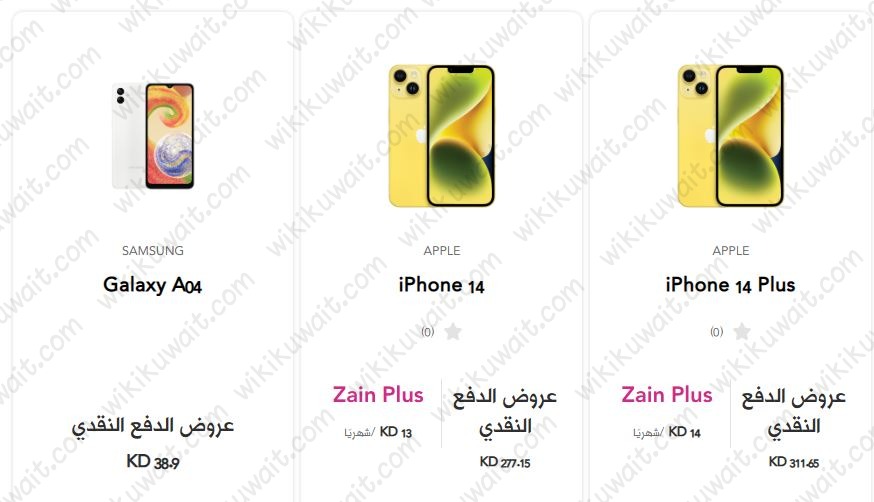 | هاتف آيفون 14 بلس | 14.00 دينارًا كويتيًا / شهريًا | 311.65 دينارًا كويتيًا |