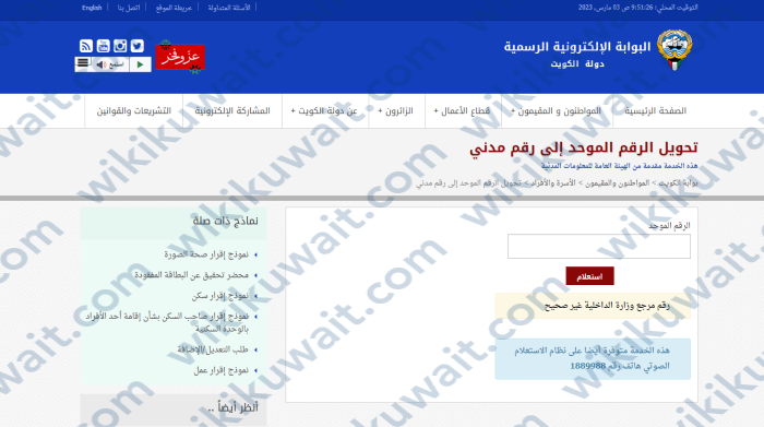 رابط الاستعلام عن الرقم المدني بالرقم الموحد في الكويت