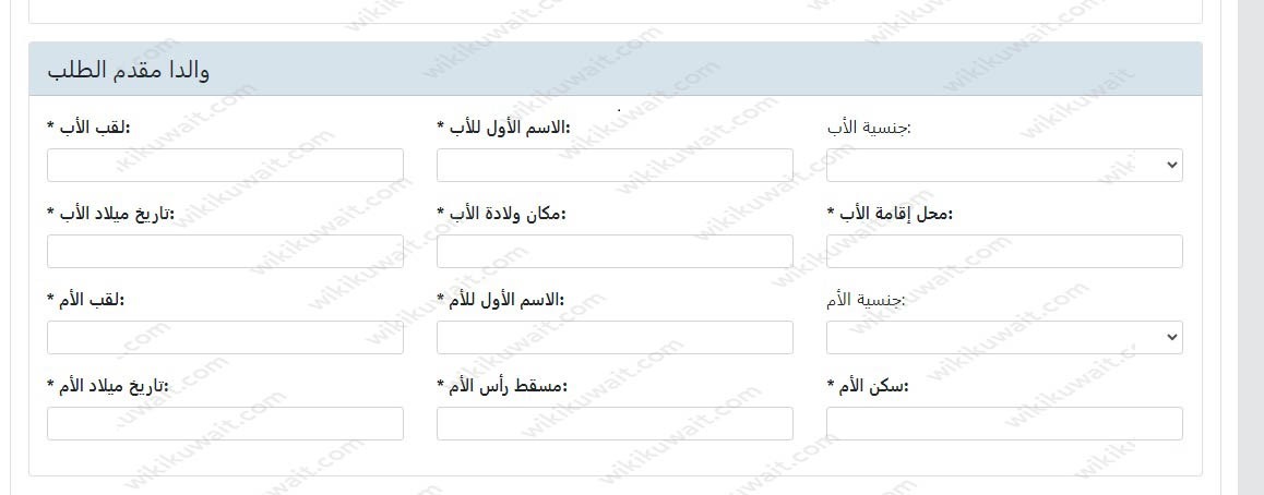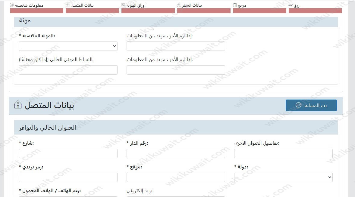 - تعبئة الحقول الخاصة بالمعلومات الشخصية عن مقدم الطلب وتتضمن: