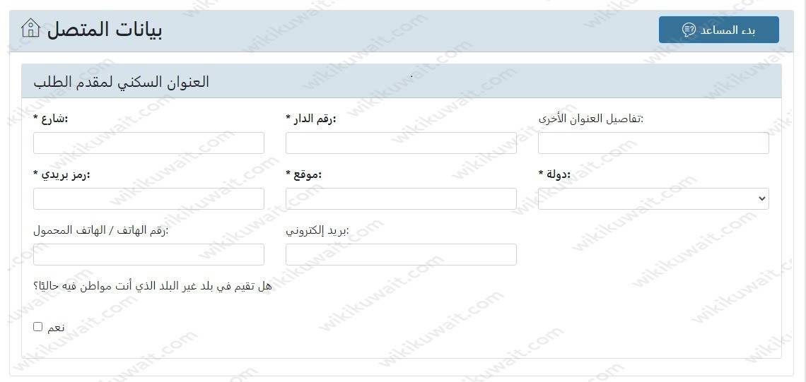 - بيانات العنوان السكني لمقدم الطلب ويتضمن: