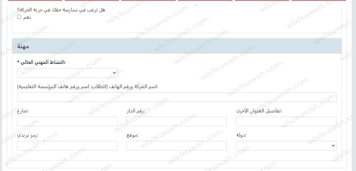 - تحديد خيار “هل ترغب في ممارسة حقك في حرية الحركة” بنعم.