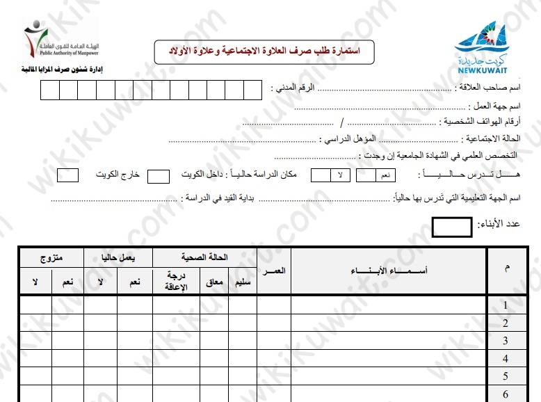 - 2 استمارة طلب صرف العلاوة الاجتماعية وعلاوة الاولاد 2025 الكويت