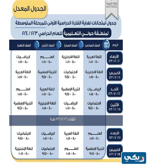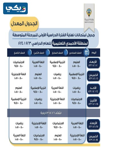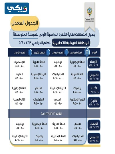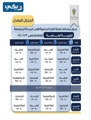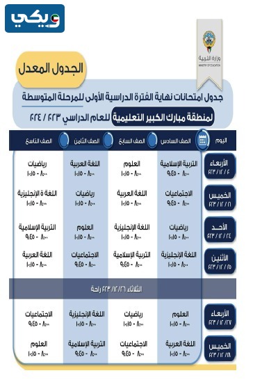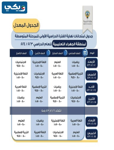 - 7 الجدول المعدل للاختبارات النهائية 2023 – 2024 للمرحلة المتوسطة في كافة مناطق الكويت