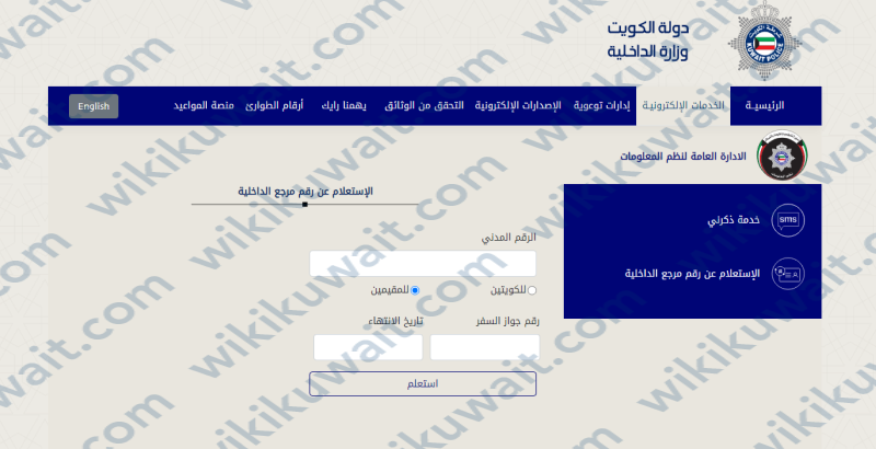 - ^moi.gov.kw , الإستعلام عن رقم مرجع الداخلية , 14/09/2023