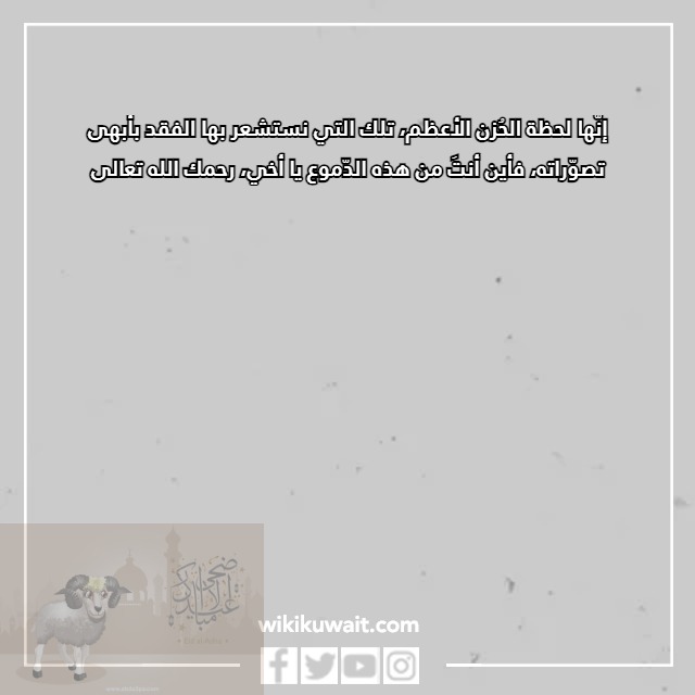 - إنّ أوّل عِيد بِدون أخِي الغالي، بدون تلك الملامح التي نفتقدها مع كلّ جزء من الثانية، فأين المفرّ من ذلك الحُزن، وأين المكان الآمن الذي لا تصلنا به الدّموع، أسأل الله أن يرحمك برحمته الواسعة، وأن يُبارك لك في القدر والأجر.