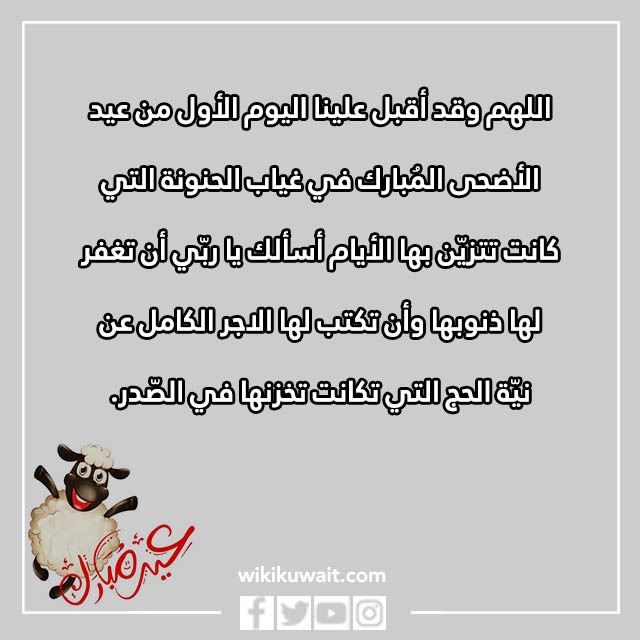 • اللهم في يوم الأضحى المُبارك أسألك أن تُبارك لجدّتي في المكانة، وأن تزيدها من العطايا، وأن ترحمها برحمةٍ من عندك تُغنها بها إنّ رحمة من سِواك، اللهم |اجبر مُصابنا في فقدها، فقد كانت السّند الجميل، والعون الحنون.