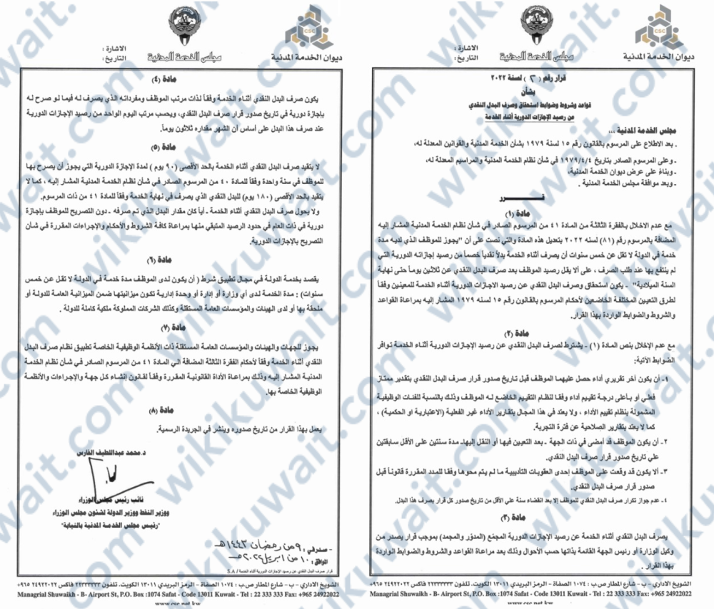 اقرأ أيضًا: تفاصيل مرسوم بيع رصيد الاجازات في الكويت