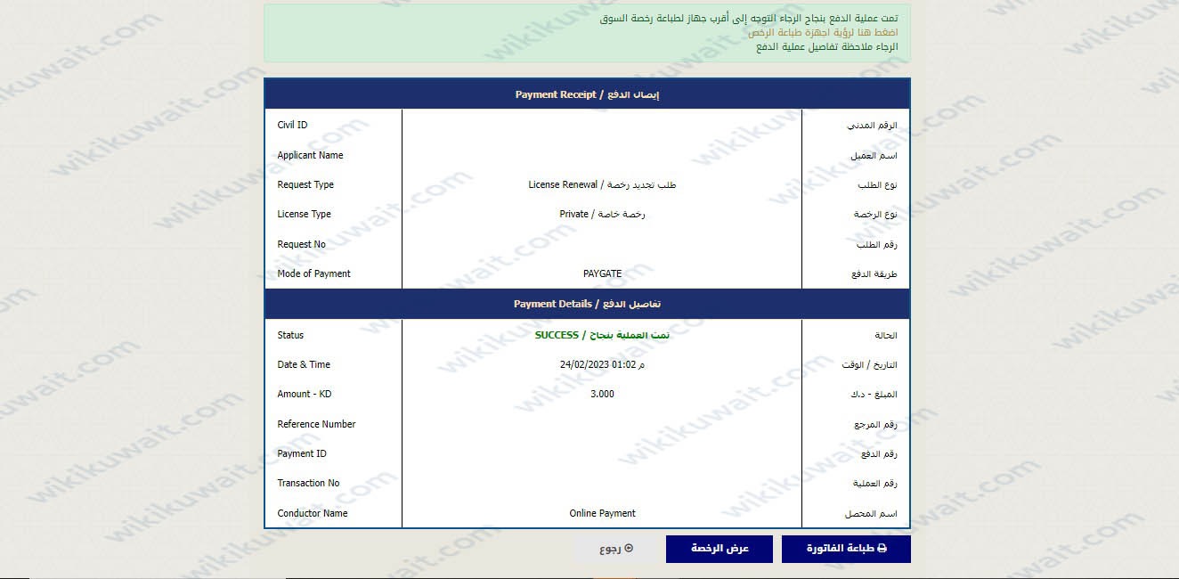 - ^kuwaitplatform.com , تجديد رخصة القيادة أون لاين , 06/11/2025