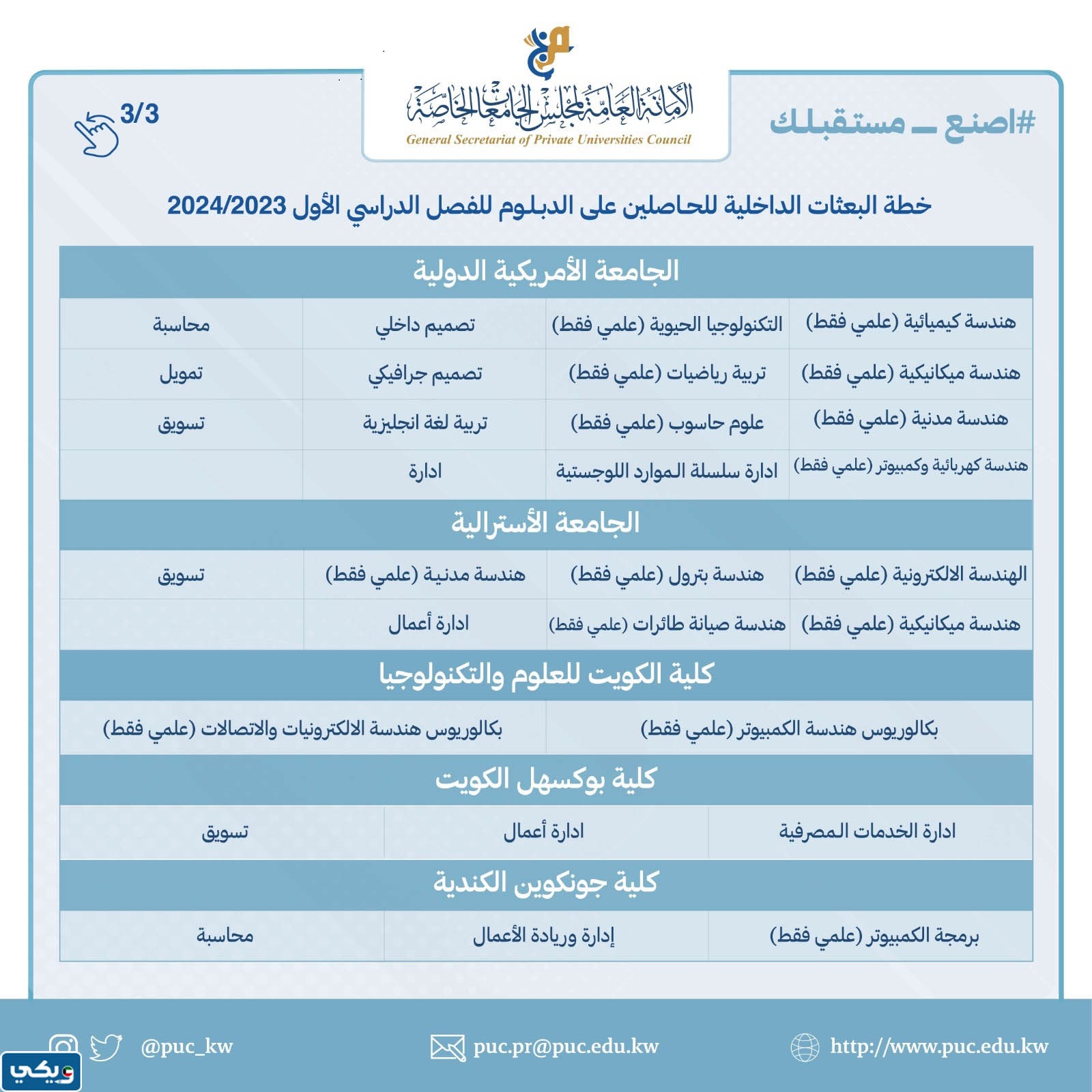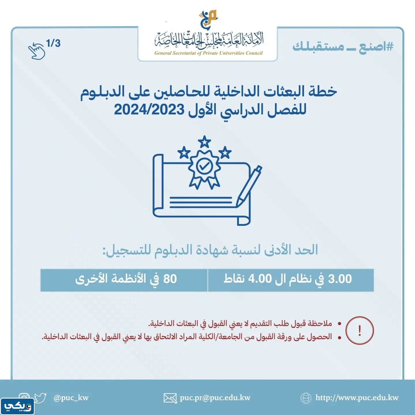- 1 تقديم البعثات الداخلية لحملة الدبلوم في الكويت 2025-2025