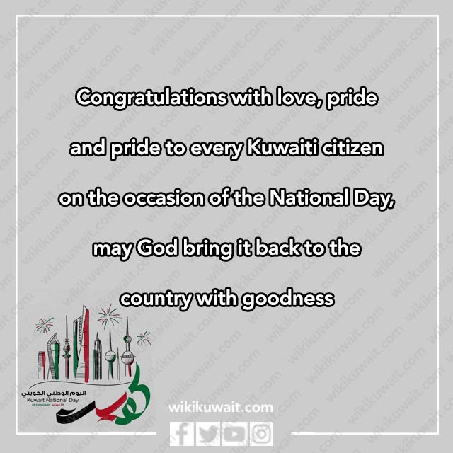 - تهنئة حب وفخر واعتزاز لكل مواطن كويتي بمناسبة اليوم الوطني، أعاده الله على البلاد بكل خير.