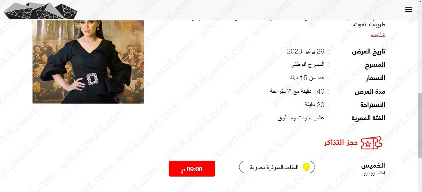 - الانتقال إلى رابط حجز حفل مي فاروق في عيد الأضحى؛ مركز الشيخ جابر الأحمد الثقافي “من هنا“.