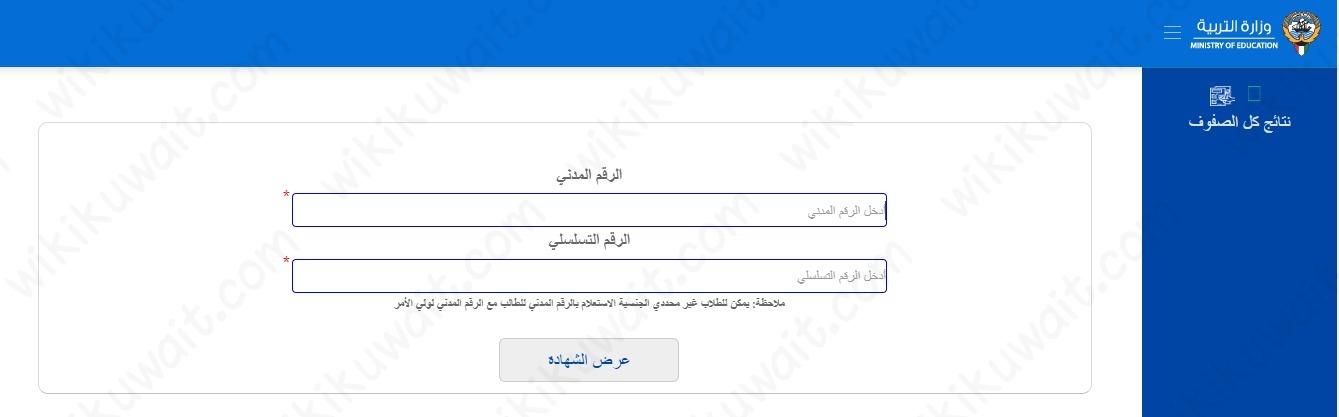 - إدراج رقم الطالب المدني في الحقل المخصص له.