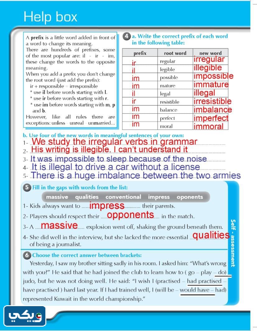 - حل كتاب الانجليزي للصف السابع workbook كامل الفصل الثاني الكويت