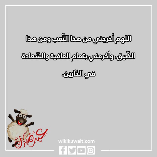 - يا ربّ الرّحمات المنثورة، أسألك في هذا اليوم من أيّام الأضحى المُبارك أن تكتب لي الخير حيث كان، وأن تُرضيني به، اللهم أخرجني من هذا التّعب وهذا الضّيق، وأكرمني بتمام العافية والسّعادة في الدّارين.