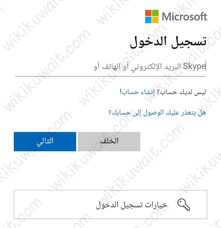 - تسجيل الدخول من خلال استخدام حساب Microsoft بإدخال البيانات التالية: