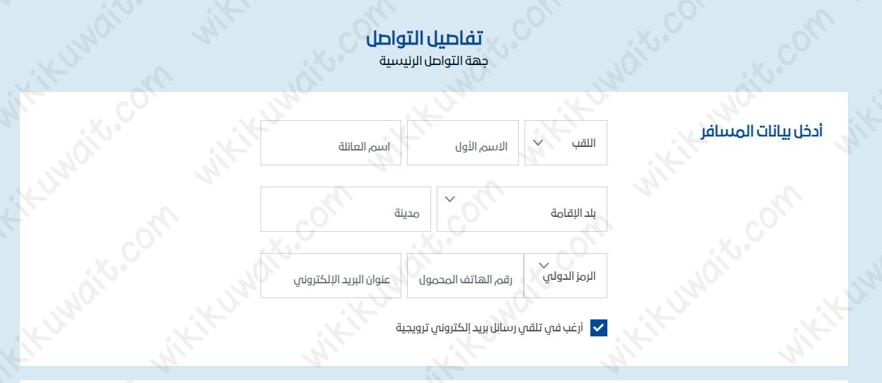 - إضافة بيانات التواصل الرئيسية للمسافر وهي: