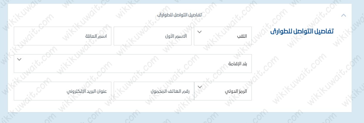 - إضافة معلومات التواصل للطوارئ بالنقر على زر السهم وإضافة كل من: