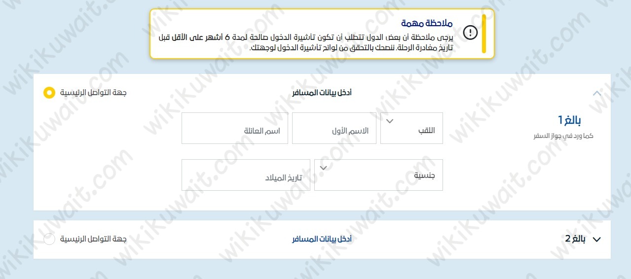 - إضافة كتفة بيانات المسافر (وفي حال وجود أكثر من مسافر في الرحلة يتم إضافة بيانات كل مسافر لوحده) وهي: