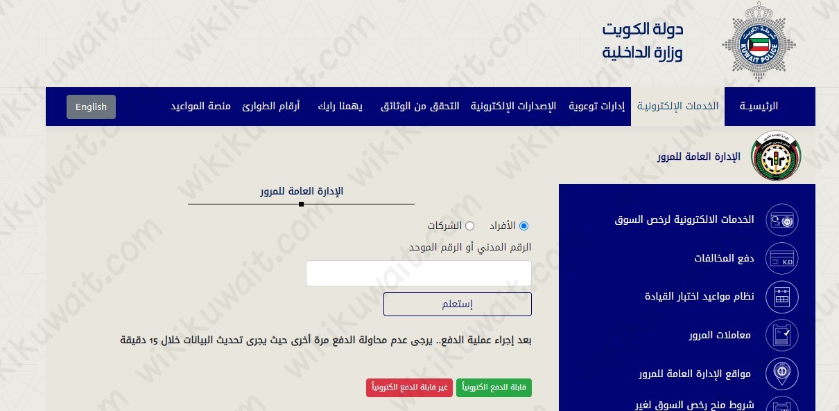 - رابط الاستعلام عن مخالفات المرور للافراد الكويت