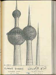 رسم ابراج الكويت بالرصاص