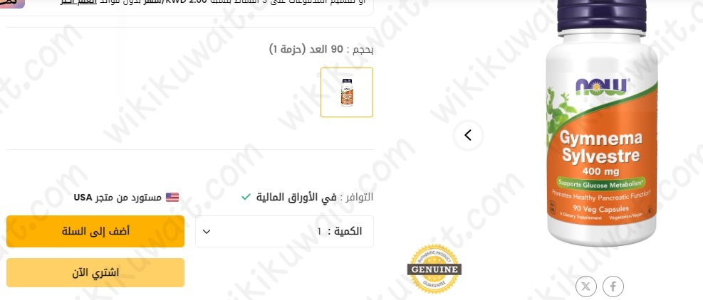| متجر يوباي | جمنيما سيلفستر 400 ملغ، يدعم استقلاب الجلوكوز، 90 كبسولة نباتية. | 6 دينار كويتي | متوفر |