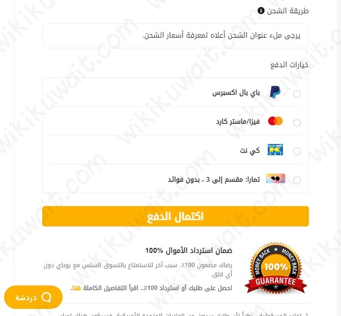 - اختيار طريقة الدفع المرغوبة وفق الطرق المتوافرة على الموقع.