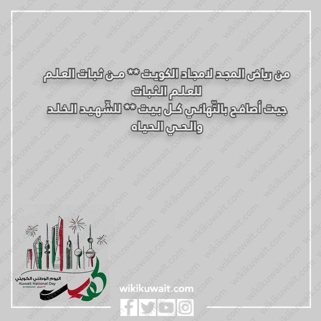 من رياض المجـد لامجـاد الكويـت ** مــن ثـبـات العـلـم للعـلـم الـثـبـات