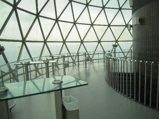- البرج الأول: ارتفاعه 187 متراً، يحتوي في الطابق السفلي على صالة استقبال وقاعة تدريب وقاعة رويال كافيه، والكرة الكاشفة بالبرج على ارتفاع 133 متراً تدور دورة كاملة حول محورها؛ لتعرض للزوار معالم الكويت كاملة كل 30 دقيقة تقريبًا، والكرة الأولى تضم الواحة مع مطعم ومقهى، ويوجد بالبرج 2 مصعد سريع لنقل الزوار إلى الكرة الكاشفة بسهولة.