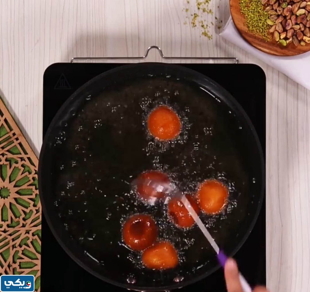 - يتم غمر الكرات في القطر البارد، وتزيينها بالمكسرات المطحونة.