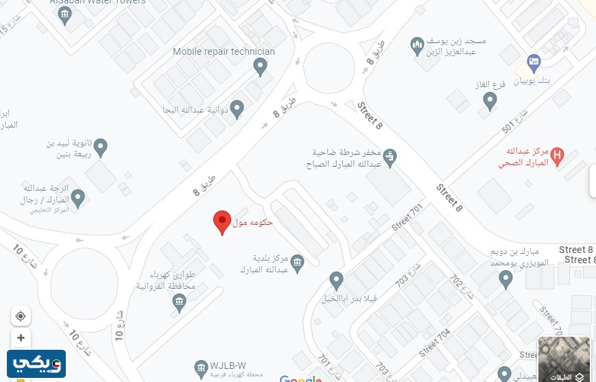 - عنوَان مَركز الحكوَمة مُول غَرب عَبدالله المبَارك: الكويت، محافظة الفروانية، ضاحية عبدالله المبارك، طريق 8 بالقرب من مخفر شرطة عبدالله المبارك، وطوارئ الكهرباء محافظة الفروانية ومركز بلدية عبدالله المبارك.
