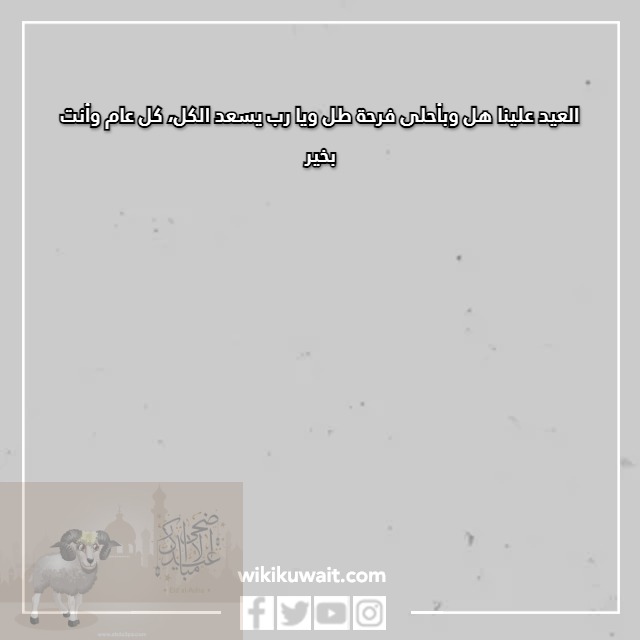 - صباحكم معطر بذكر الله، كل عام وأنتم إلى الله أقرب، وإلى طاعته أرغب، وإلى صحبته وصحبة نبيه أقرب، كل عيد أضحى وأنتم بخير، أعاده الله عليكم هذه الأيام بالخير واليمن والبركات.