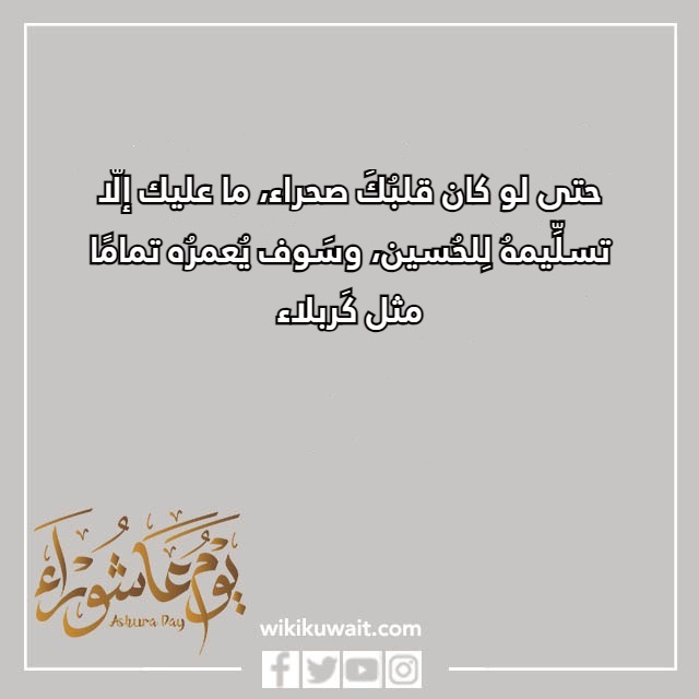 كلام جميل عن يوم عاشوراء 1446 مكتوب “اقوال عن يوم عاشوراء” حزنًا على استشهاد الإمام الحسين وكوكبة من شهداء كربلاء يوم العاشر من محرم، فتعود الذكرى محملة بالعِبرة والغبرة، منها ما تنشر على هيئة عباراتٍ وأقوالٍ يستعرض بعضًا منها موقع ويكي الكويت في سطوره التالية ما بين أقوالٍ وأحاديث متداولةٍ وأبيات شعرٍ، كذلك صور.