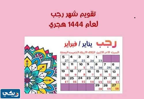 شهر رجب هو الشهر السابع من أشهر السنة الهجرية، ويوافق هذا الشهر لعام 1444 هجريًا شهري يناير وفبراير لعام 2023 ميلاديًا، حيث يأتي هذا الشهر بعد انتهاء شهر جمادى الآخرة، ويعد هذا الشهر من الأشهر الحرم التي يحرم الله تعالى فيها القتال، كما أنه يمثل أهمية كبيرة بالنسبة للمسلمين؛ بسبب وقوع ليلة الإسراء والمعراج فيه، أما عن تسمية شهر رجب بهذا الاسم، فلقد سمي بذلك من الرجوب بمعنى التعظيم حيث يعد من الأشهر العظيمة عند المسلمين.[1]
