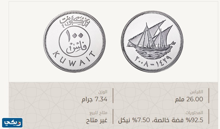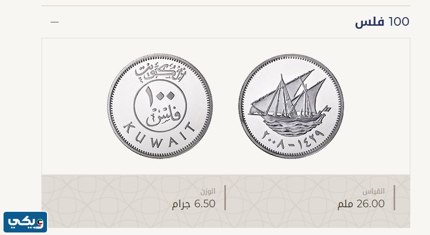 | 100 فلس | فضية | 6.5 جرام | 26 ملم |