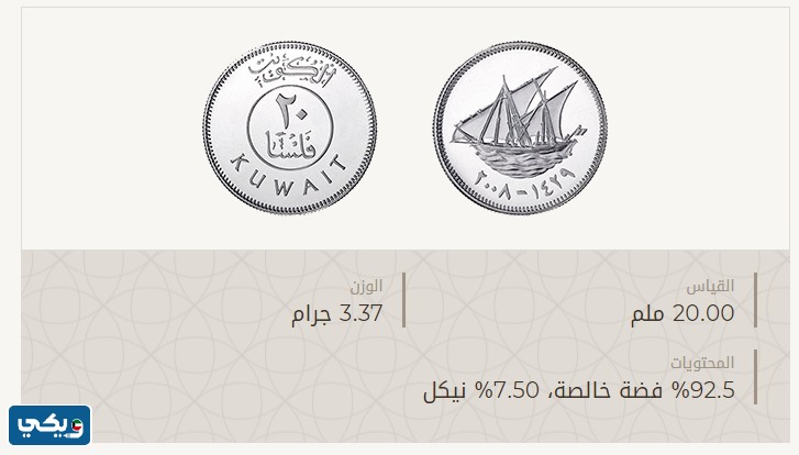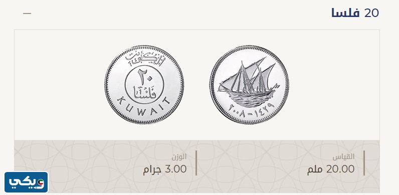 | 20 فلس | فضية | 3 جرام | 20 ملم |