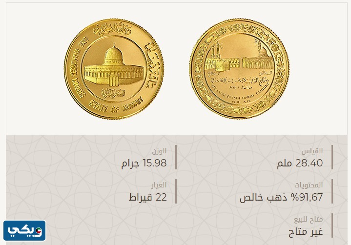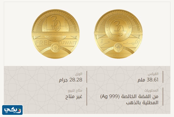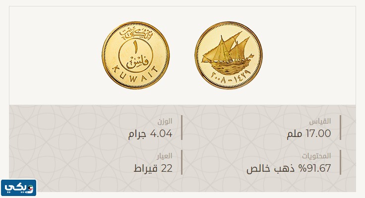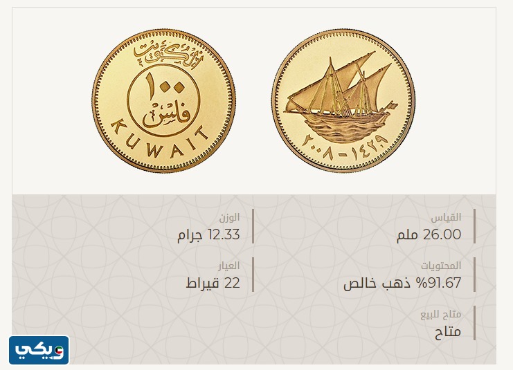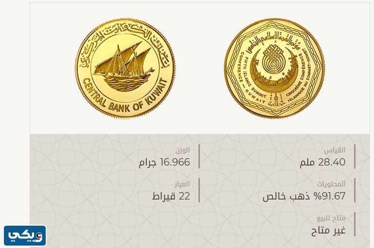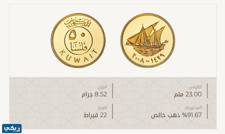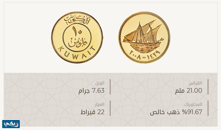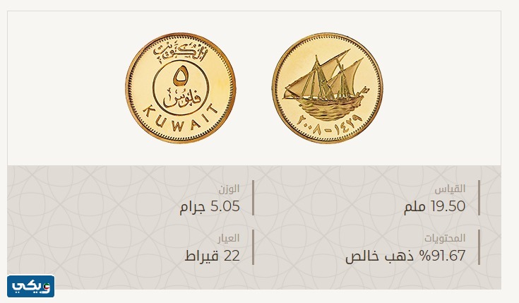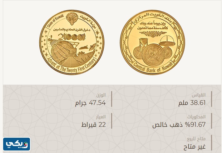 يمكن التعرف على أهم مواصفات مسكوكات البنك المركزي الكويتي المذهبة من خلال الاطلاع على الجدول التالي: