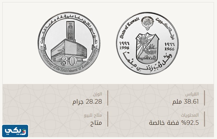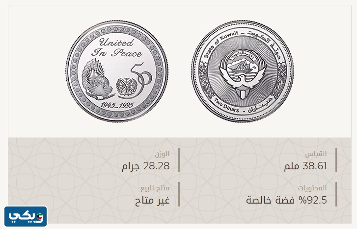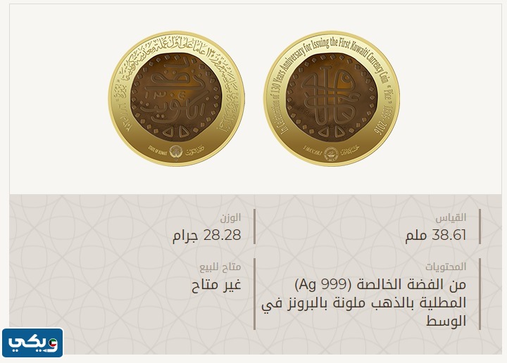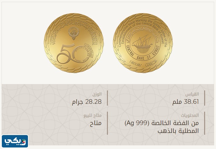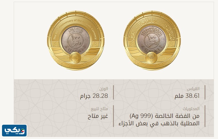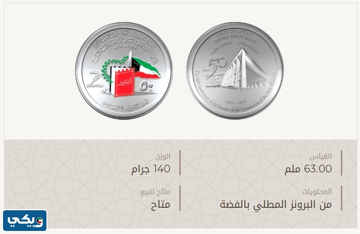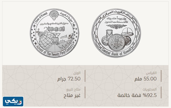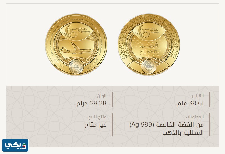 إن سعر كل قطعة من المسكوكات التذكارية في البنك المركزي الكويتي هو 45 دينار كويتي.