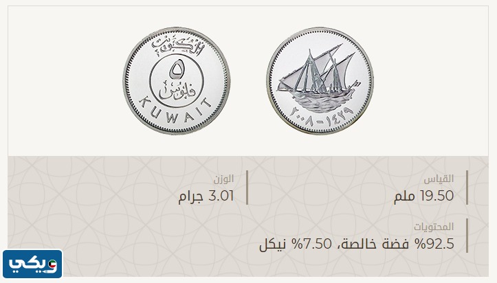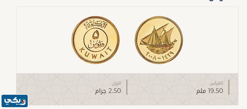 | 5 فلس | ذهبية | 2.5 جرام | 19.5 ملم |
