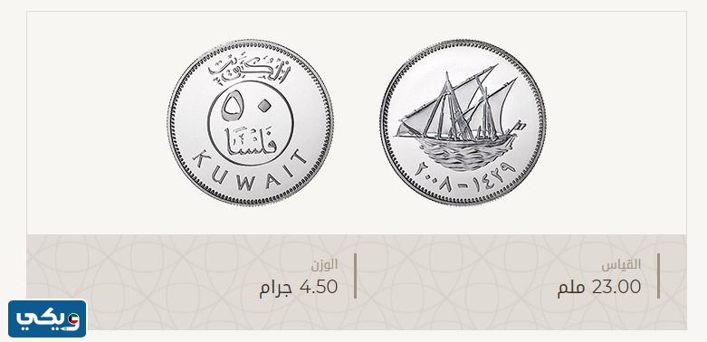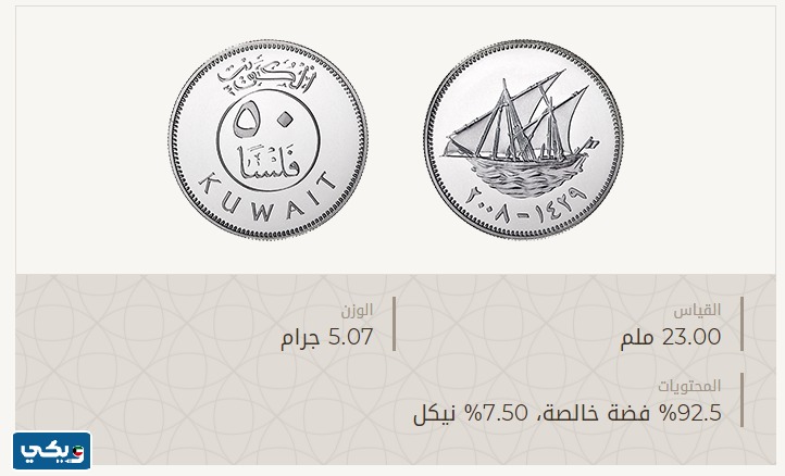 | 50 فلس | فضية | 4.5 جرام | 23 ملم |