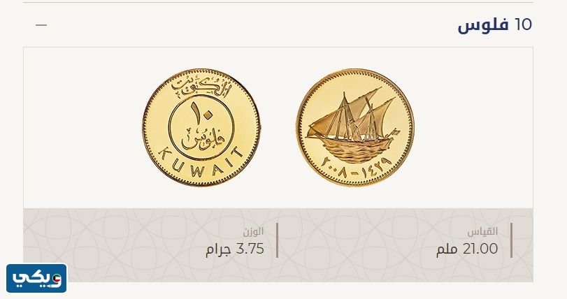 | 10 فلس | ذهبية | 3.75 جرام | 21 ملم |